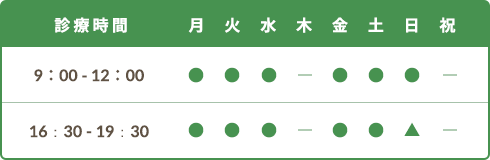 [ 休診 ] 木/祝日